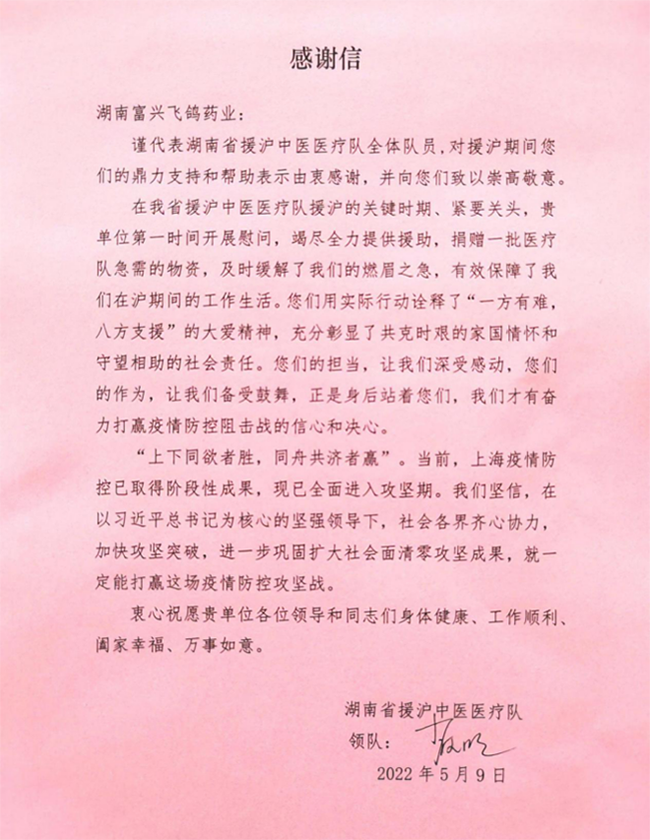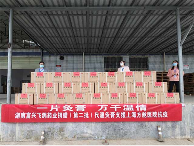 自2020年新冠疫情爆發(fā)以來,富興飛鴿藥業(yè)積極行動為抗疫貢獻力量,解疫情之急、病患之痛。已多批次向國內外捐贈代溫灸膏,為打贏疫情防控、守護人民健康作出了積極作用。