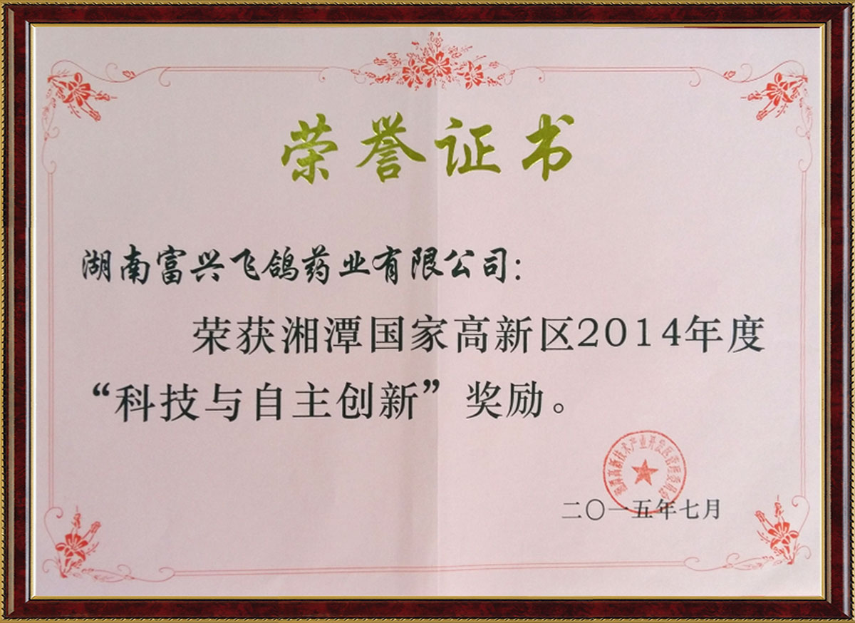 榮獲湘潭高新區(qū)2014年“科技與自主創(chuàng)新”獎勵